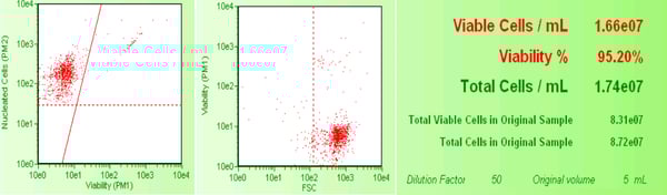Figure 3. Cell viability and viable cell count by Guava PCA